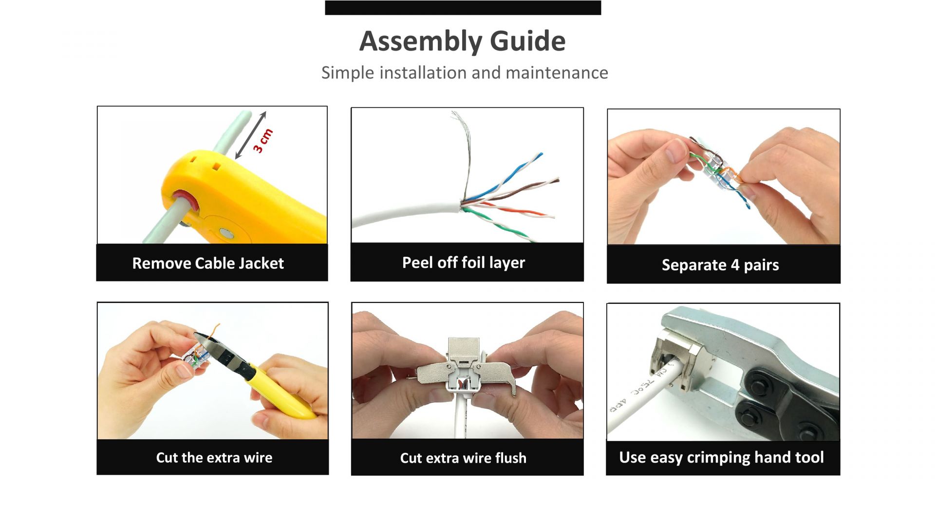 مقبس إيثرنت Crxconec keystone مدرج في قائمة أمان UL ، وتم التحقق من تصنيف DELTA و ETL من النوع IEC60512-99-002 PoE من النوع III 60W ، والقدرة IV 100W ، و IEEE802.3bt من النوع الثالث والرابع. مع المصراع الخالي من الأدوات والمانع للأتربة ، يمكن لشبكة إيثرنت cat6 utp keystone أن تثقب السلك وتناسب الغطاء للحفاظ على الجودة أسهل بكثير وثباتًا. لذلك ، يعتبر منفذ إيثرنت c6 خيارًا مثاليًا من شبكات المكاتب إلى مراكز البيانات العملاقة في لوحة كيستون 1U ذات 48 منفذًا. يجعل اللون الأسود القاتم مظهرًا فريدًا وأسلوبًا عصريًا. هذا هو السبب في أن منتج أسلاك مقبس الحائط c6 ethernet يصبح أحد العناصر الأكثر مبيعًا في السوق التنافسي.